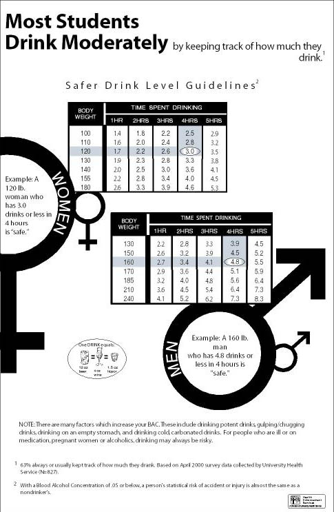 Provides a Safer Drink Level Chart, with tips for maximizing pleasure and safety - How do you compare to a typical NIU student?